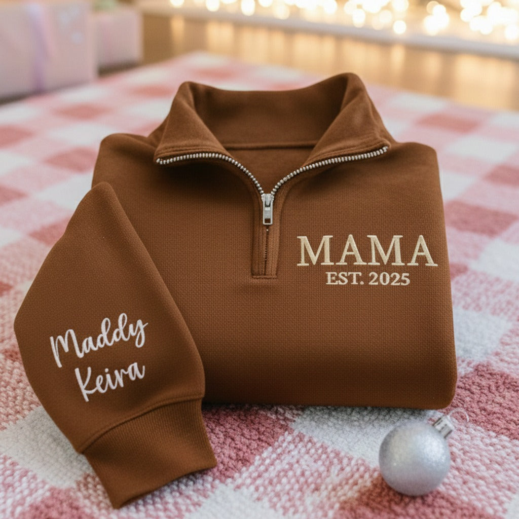 Custom Mama Sweatshirt, Embroidered Grandpa Quarter Zip Sweatshirt, Personalized Family Sweater, Gifts for Mom, Christmas Gifts