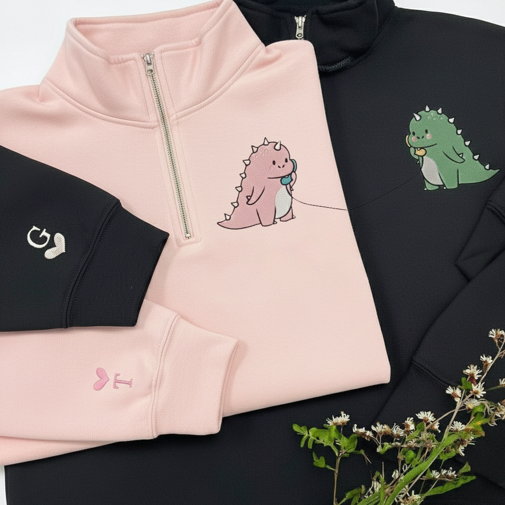 Custom Couple Dinosaur Embroidered Sweatshirt, Kawaii Dino Love Valentine Sweater, Matching Couple Sweatshirts, Anniversary Gift