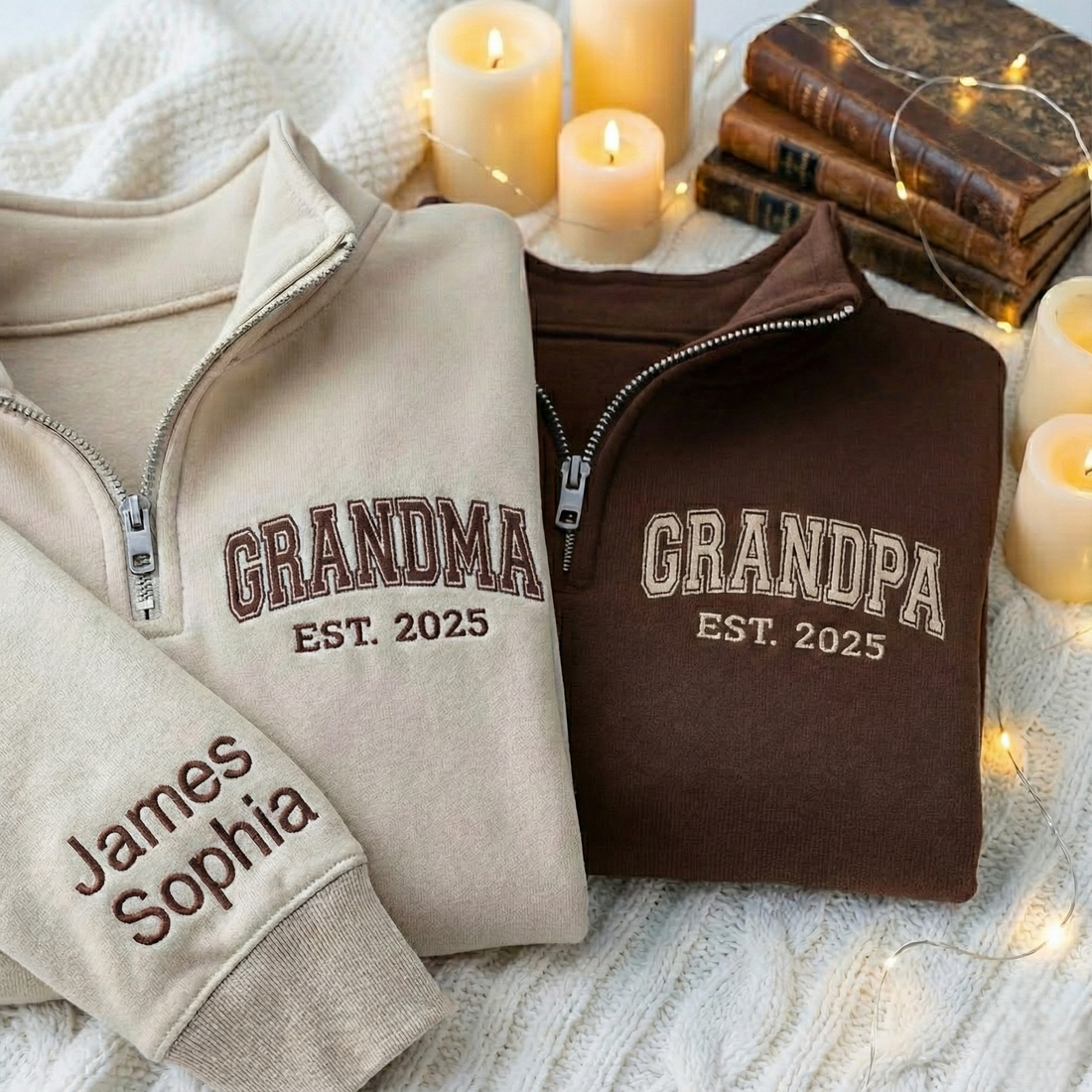 Embroidered Couple Quarter Zip Sweatshirt: Custom Mama, Grandma Quarter Zip Shirt, Matching Family Sweater with Kid's Names, Christmas Gift