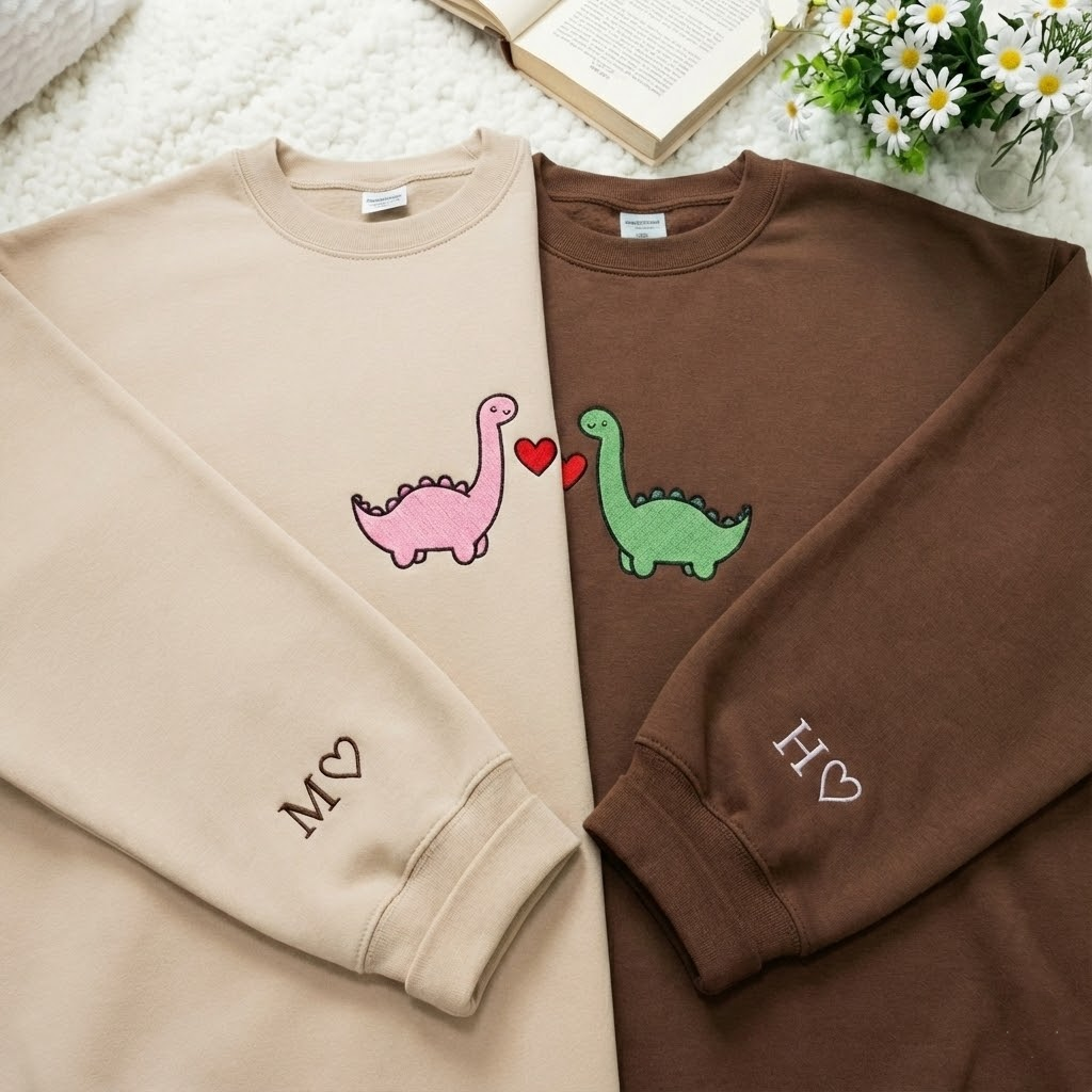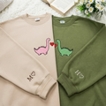 Custom Dinosaur Couple Embroidered Hoodie with Roman Date & Initials - Matching Hoodies For Couple - 1st Anniversary Gift for Couples