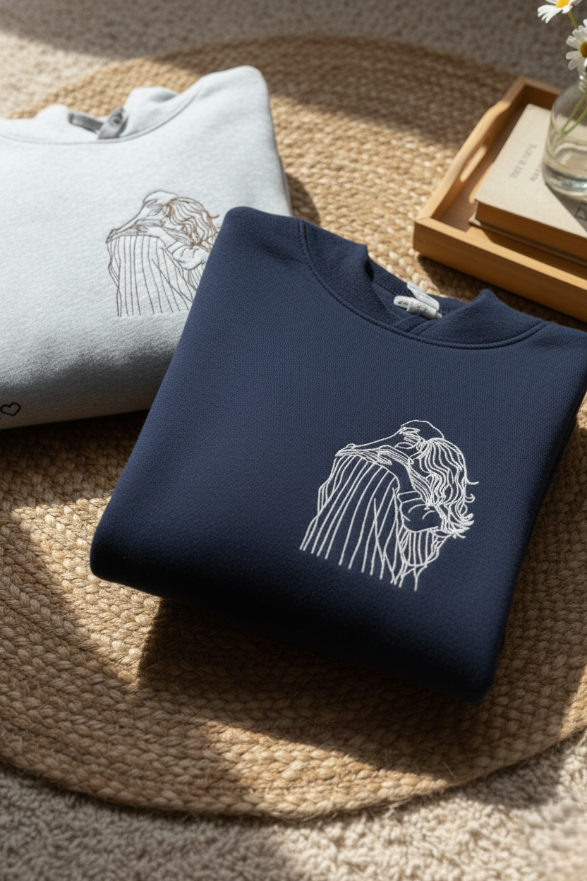 Each sweatshirt is made to order and individually embroidered based on your photo, name, or custom idea. Whether it’s a meaningful gift or a personal keepsake, your embroidered piece is created with care and attention to detail.