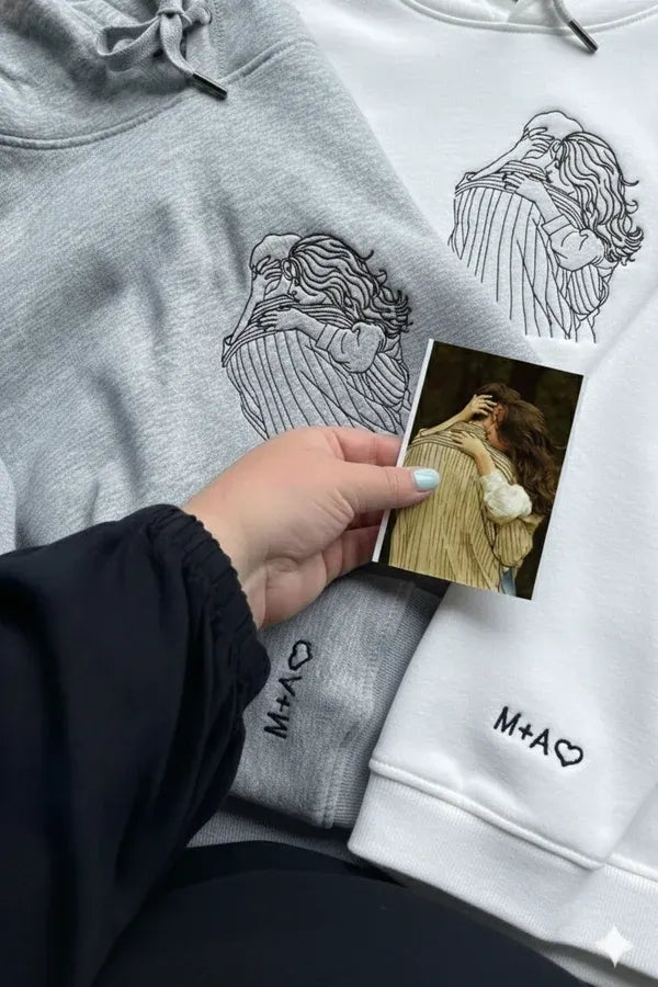 Custom Embroidered Couple Portrait Hoodie: Personalized Photo Sweatshirt, Matching Hoodies, Valentine Gift