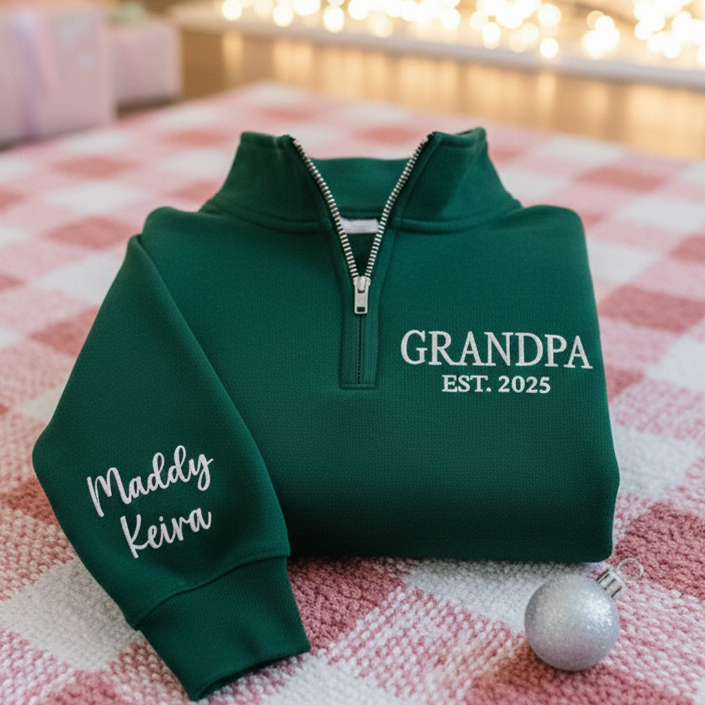 Custom Grandpa Sweatshirt, Embroidered Grandpa Quarter Zip Sweatshirt, Personalized Grandpa Sweater, Gifts for Grandfather, Christmas Gifts