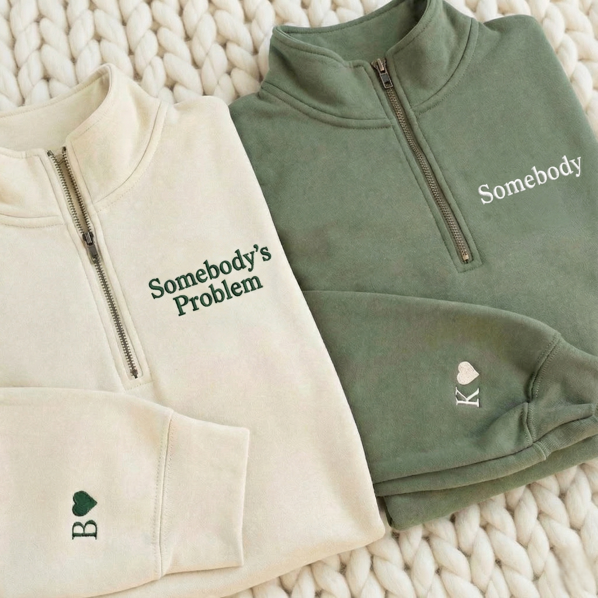 Embroidered Matching Couple Quater Zip Sweatshirt, Funny Valentine's Sweatshirt, Anniversary Gift