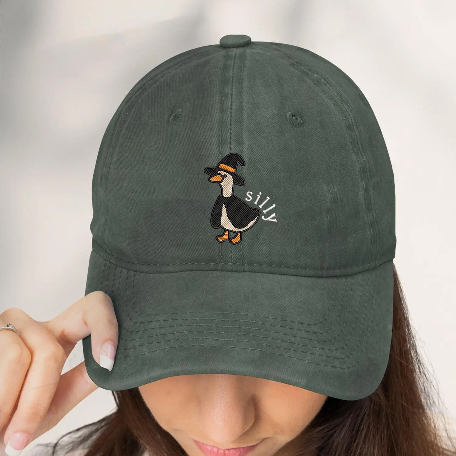 Embroidered Silly Goose Embroidered Washed Hat, Pumpkin Embroidered Cap, Halloween Vintage Embroidery Cap, Spooky Season Outdoors Gifts