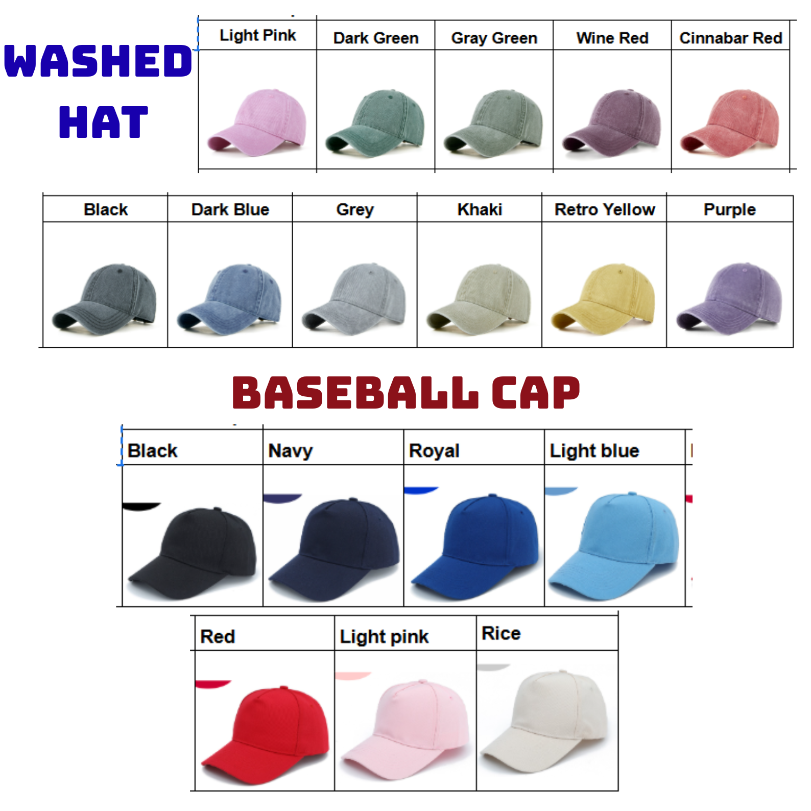 Choose your hat style and color.