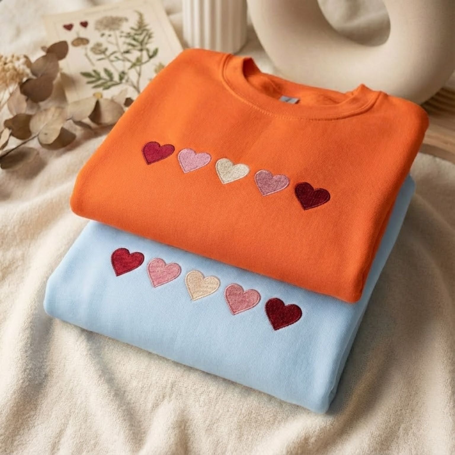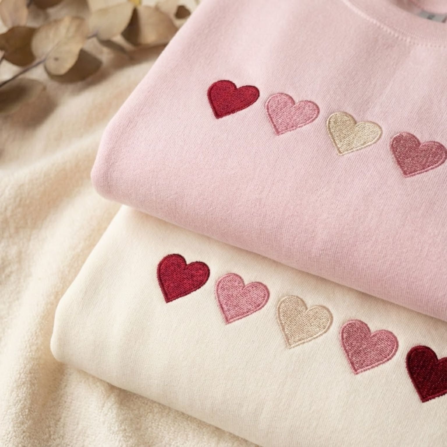Heart Embroidered Design, Minimal Heart Design, Valentineās Day Crewneck, Cute Pink Red Heart Design, Romantic Valentine Gift for Her