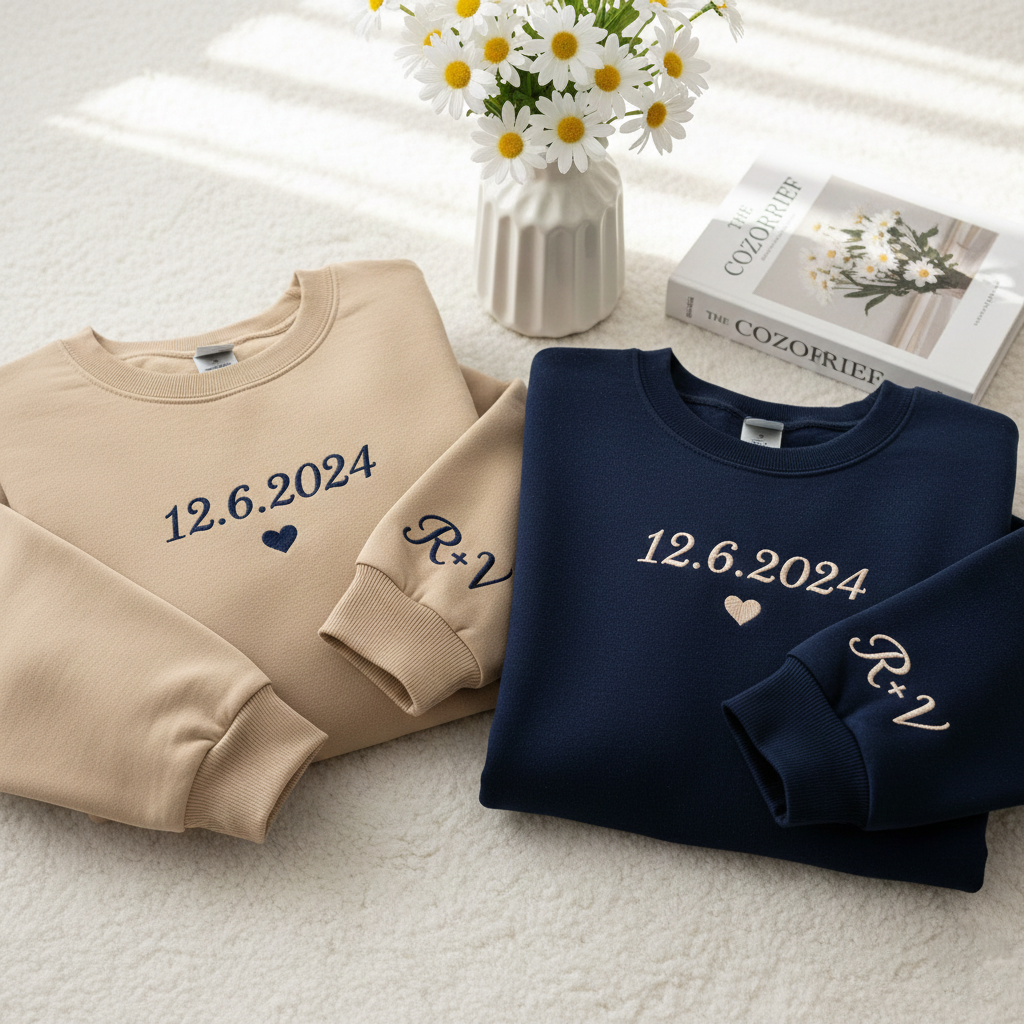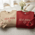 Personalized Date Sweatshirt With Initials On Sleeve, Embroidered Custom Couple Hoodie, Anniversaries Outfit, Matching Valentines Clothing, Wedding Gift