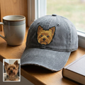 Personalized Embroidery Dog Portrait Hat, Custom Dog Christmas Baseball Cap, Dog Photo Gift for Dog Mom, Holiday Trip Hat