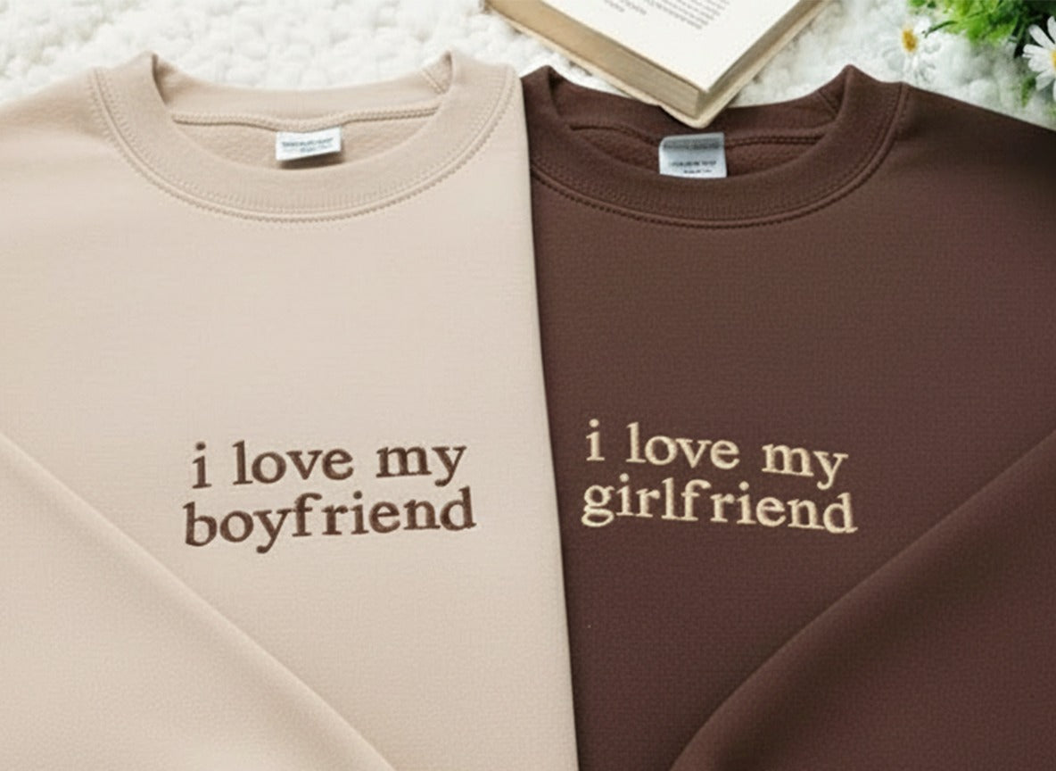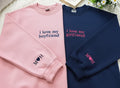 Personalized I love my boyfriend girlfriend Shirt, Custom Embroidered Couple Matching Hoodie, Valentines Day Anniversary Gift for Her Him