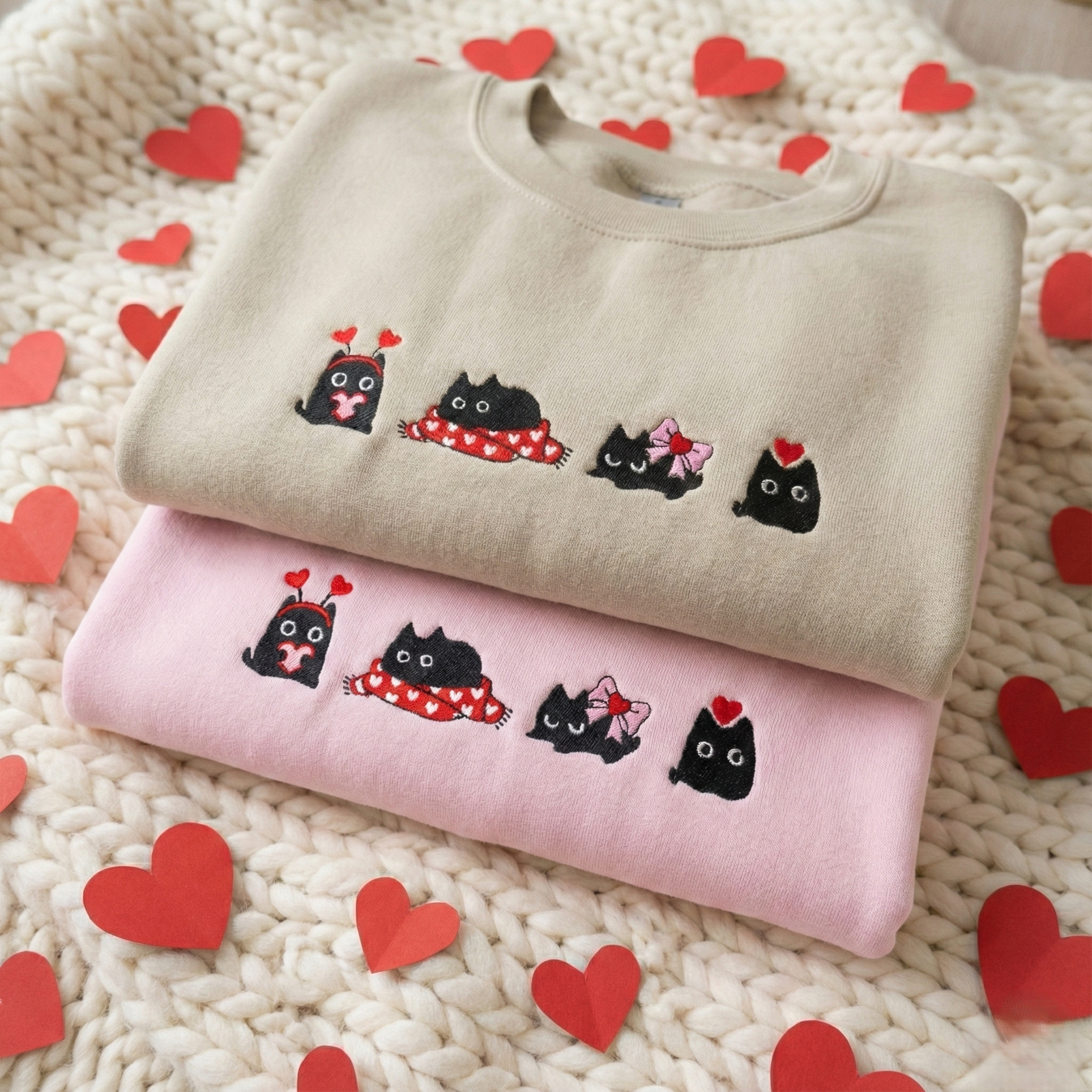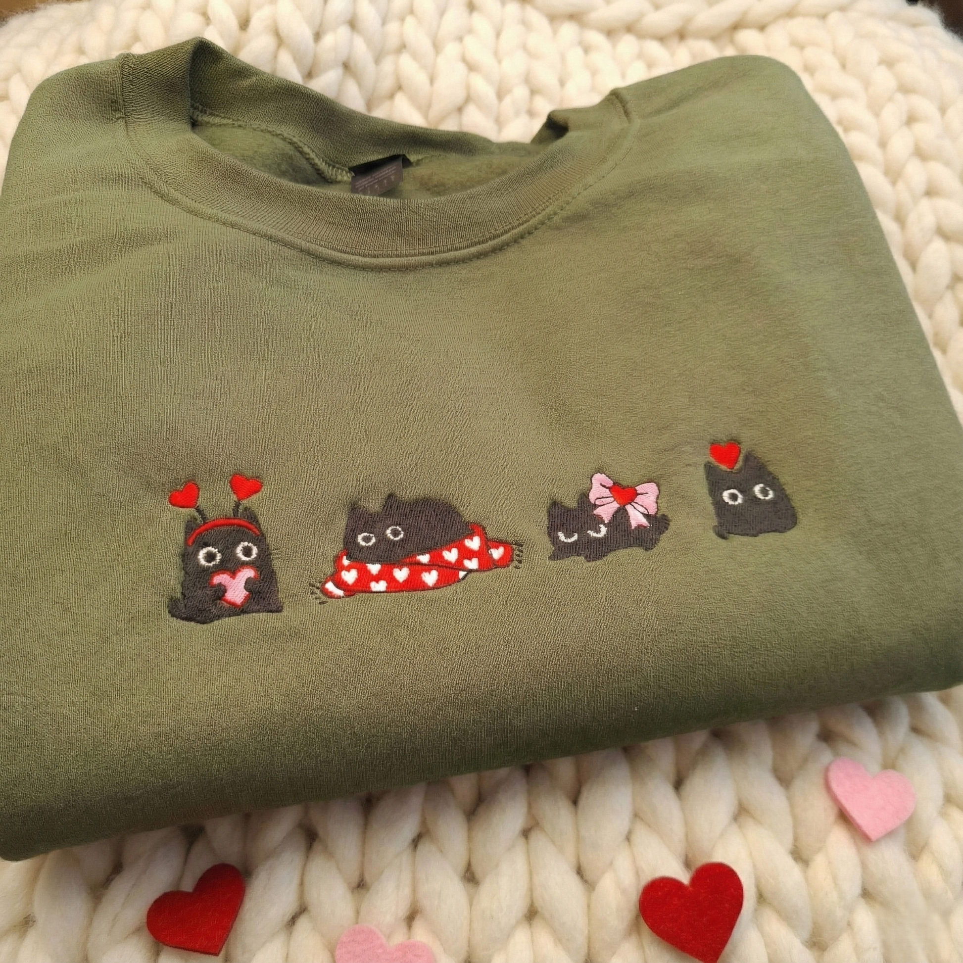 Valentine's Black Cat Sweater, Embroidered Cat Sweatshirt, Cute Cat Lover Jumper, Valentine Gift